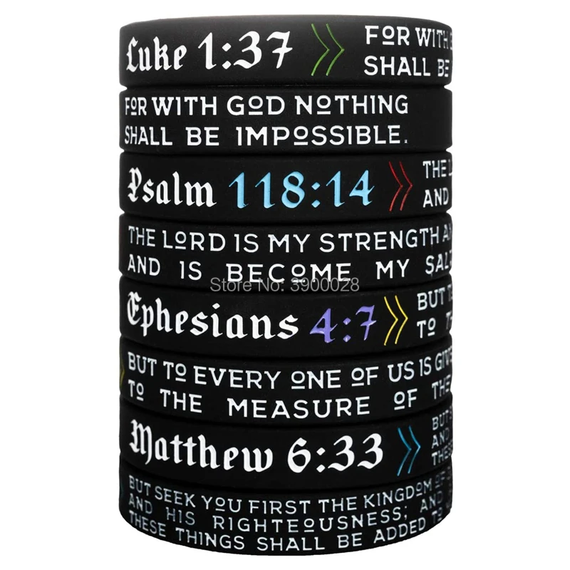 300pcs Luke 1 37 Psalm 118 14 Ephesians 4 7 Matthew 6 33 Religious Scriptures Silicone Wristband Bracelet Free Shipping By Dhl Wrap Bracelets Aliexpress