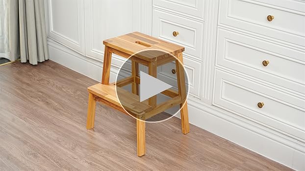 Amazon Com Wooden 2 Step Stool For Children And Adults Multifunctional Large Kitchen Step Helper For Toilet Bathroom And Bedroom Plant Stand 16 9 D X 15 4 W X 19 6 H Natural Home